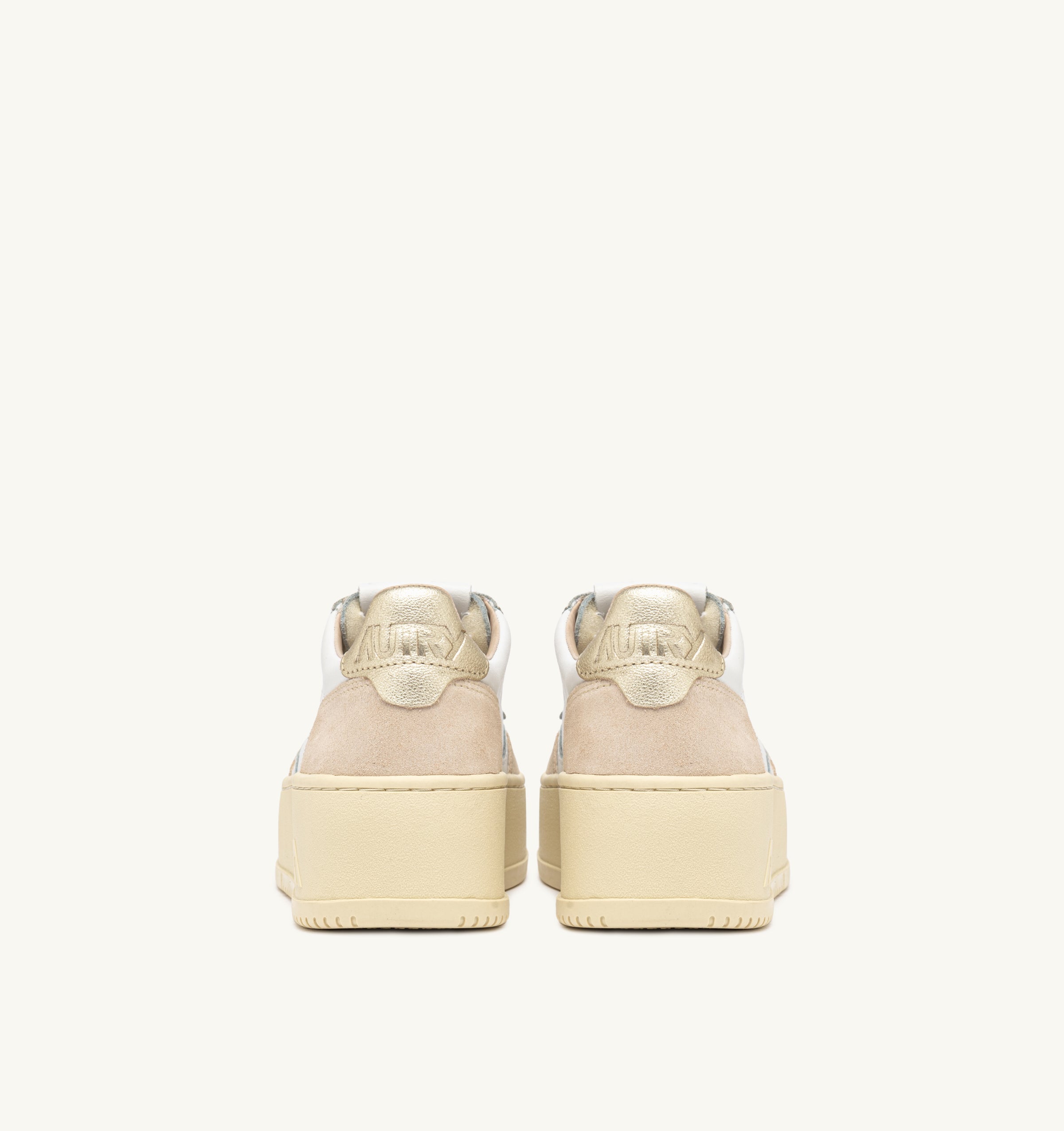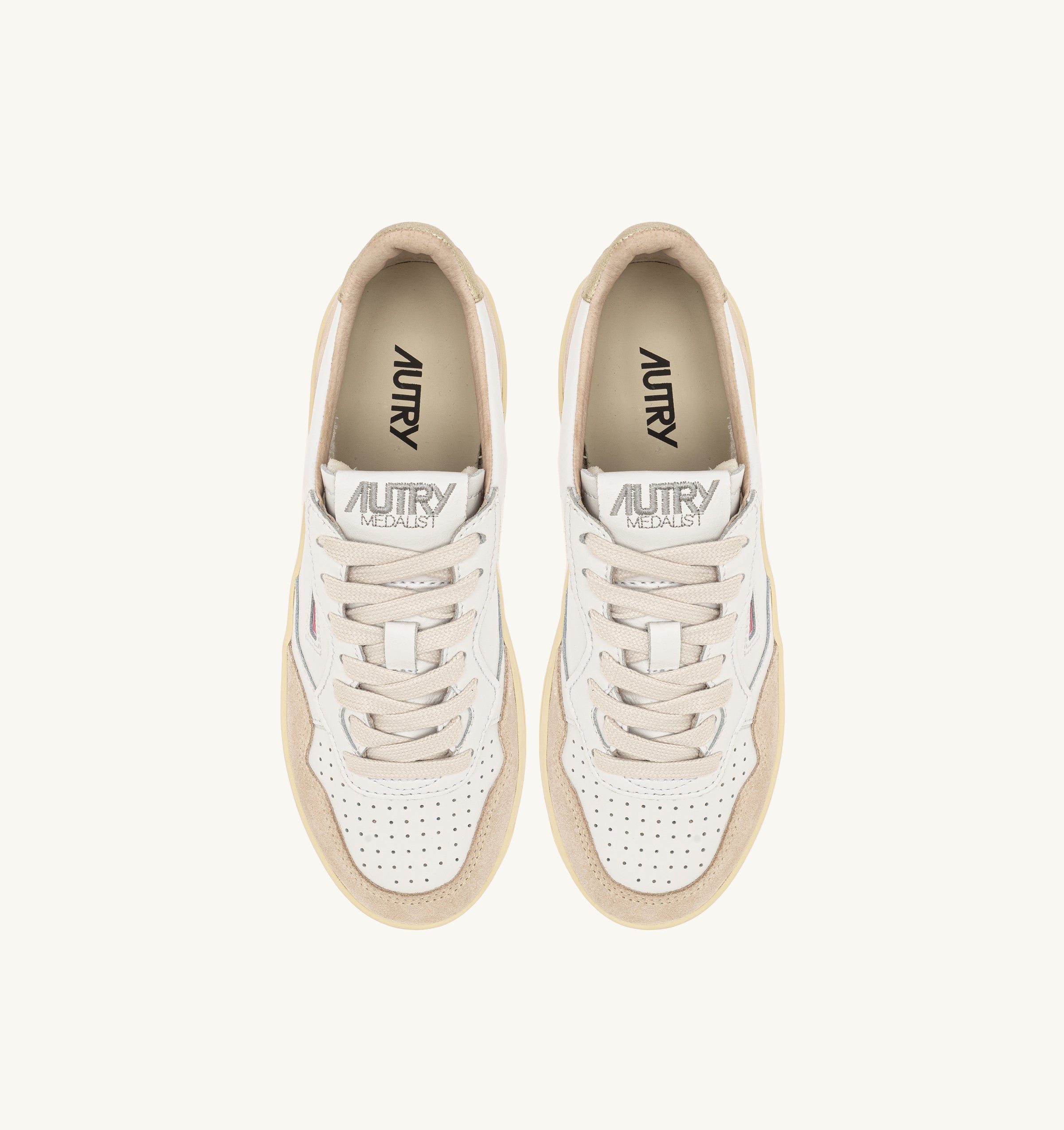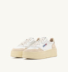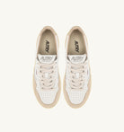 This women’s sneakers is crafted from soft, authentic white leather and features beige suede reinforcements, creating a bold tactile and graphic contrast.