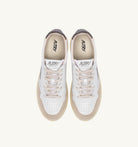 This women’s sneakers is crafted from soft, authentic white leather and features beige suede reinforcements, creating a bold tactile and graphic contrast.