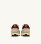 Reelwind low sneakers offer the technical edge of a performance sports shoe with the unmistakable style of the Autry aesthetic. This men’s athletic shoe is crafted from beige nylon and is reinforced by inserts in color matching suede and burgundy leather that create a dynamic design.