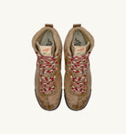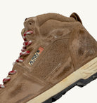 The upper is crafted from beige suede, with tone-on-tone Cordura nylon side panels and tongue, and a slightly darker beige collar. The two-tone tubular top laces ensure maximum durability.