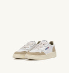 Autry Medalist heralds a new era of style and comfort. With a low top profile, this women’s sneakers is crafted from white goatskin, featuring beige suede inserts and a white logoed heel tab that define the upper.