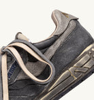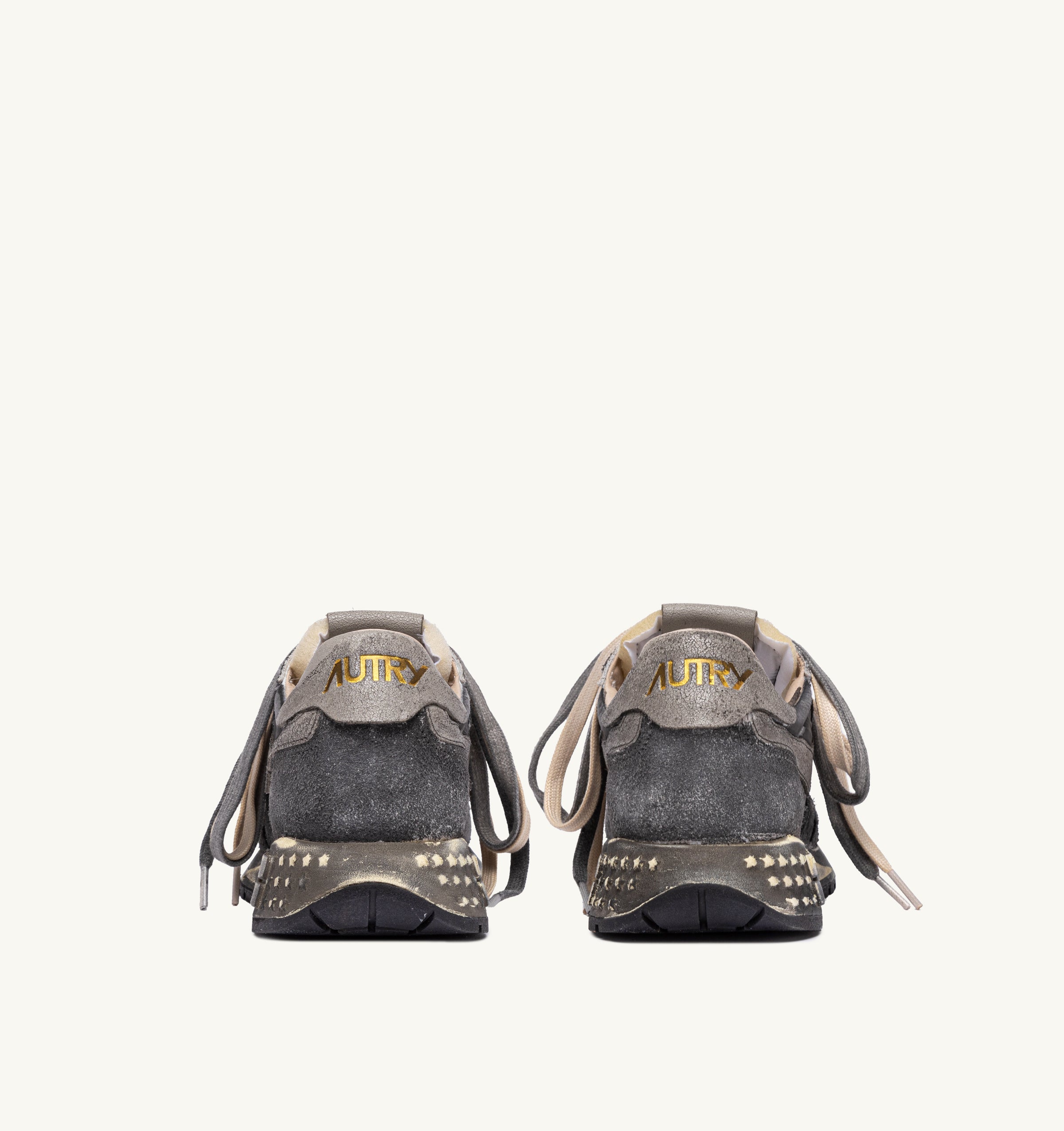Innovative, light, and extremely flexible, Reelwind draws inspiration from the running world, enhanced by artisanal treatments that give each style a distinct, irregular, and unique used appearance. This model is crafted from a mix of black suede and nylon with side overlays in gray crackle-effect leather.