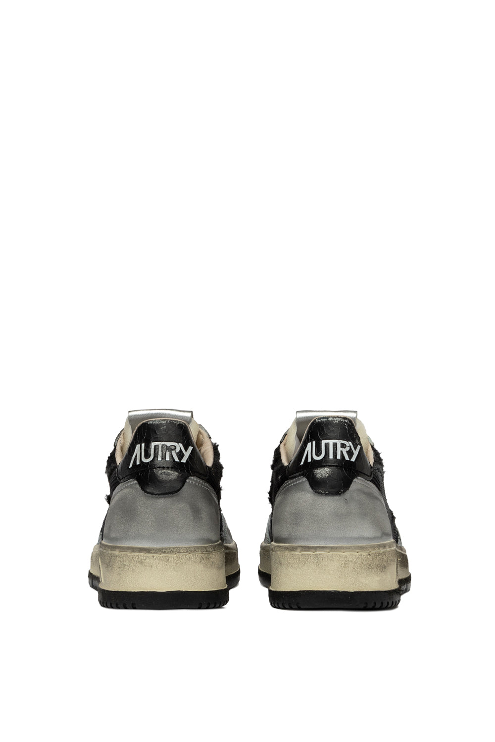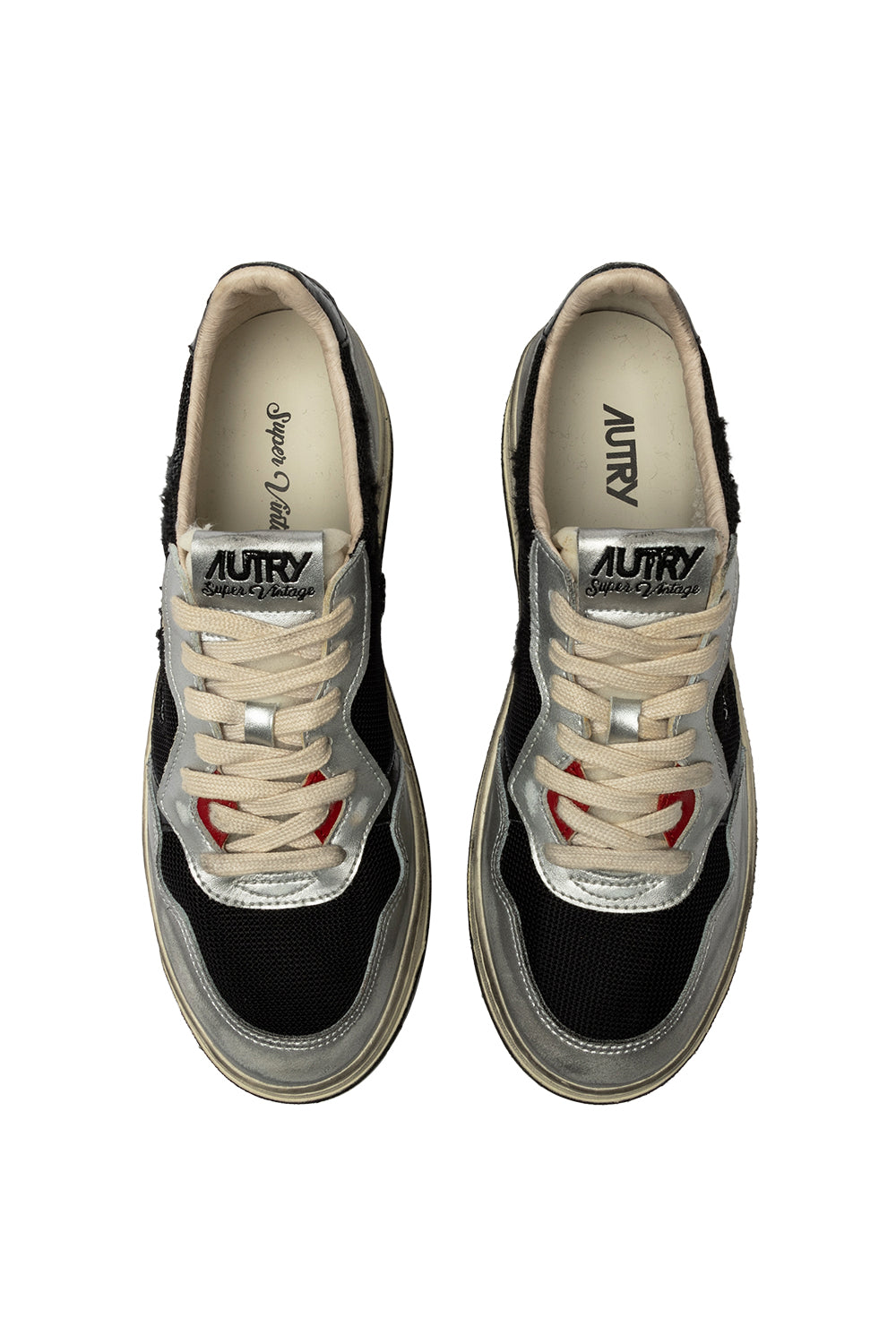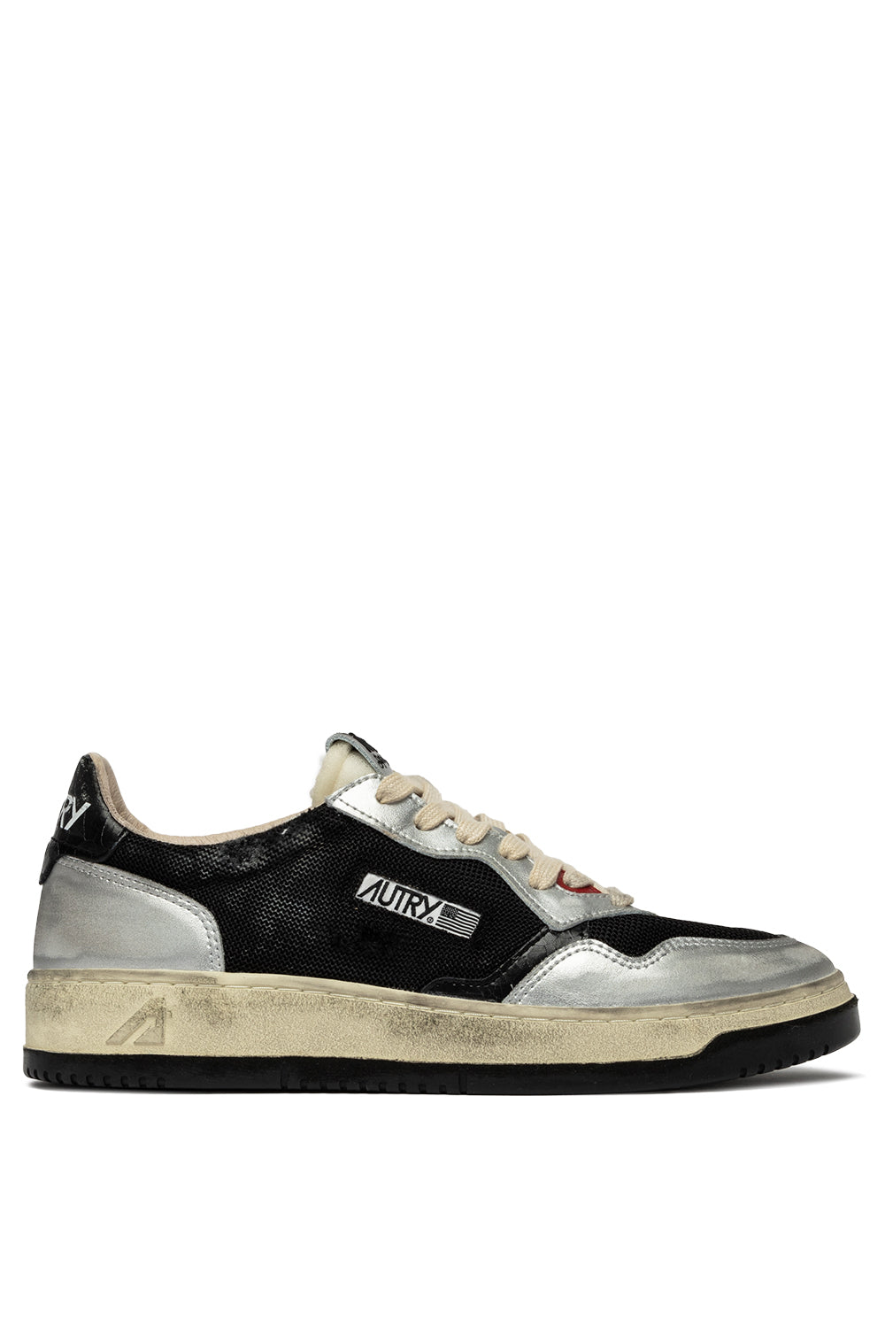 The boldest and most current street attitude is expressed with this men’s Medalist Super Vintage sneaker. This Autry sneakers is presented in white mesh with silver-tone suede inserts and crackle-effect black leather details.