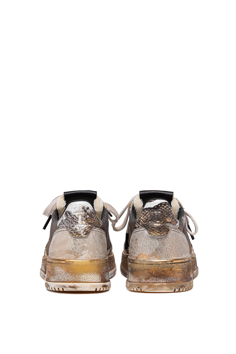 Note the golden hues on both the upper and the sole, along with the logoed heel tab featuring a python-effect leather design. The exclusive treatment used to create the vintage look is entirely Made in Italy.