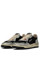 The boldest and most current street attitude is expressed with this men’s Medalist Super Vintage sneaker. This Autry sneakers is presented in white mesh with silver-tone suede inserts and crackle-effect black leather details.